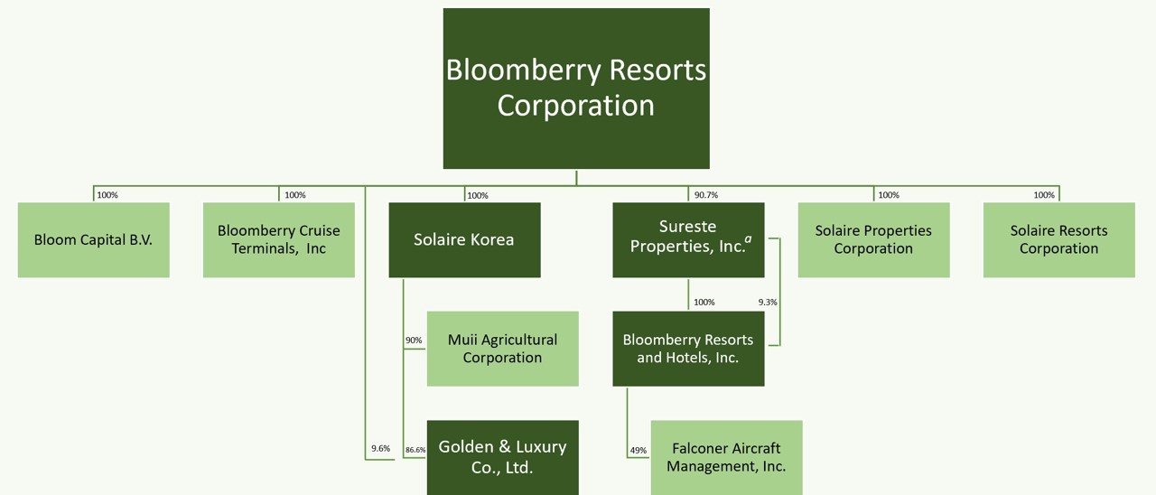 b) as of June 30, 2024, Bloomberry Resorts Japan, Inc. was fully liquidated